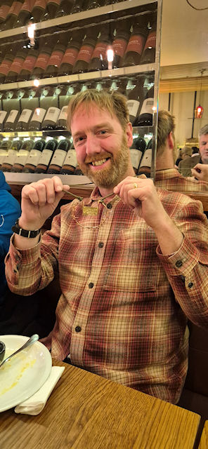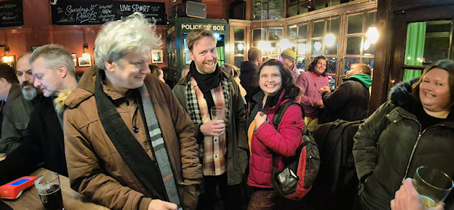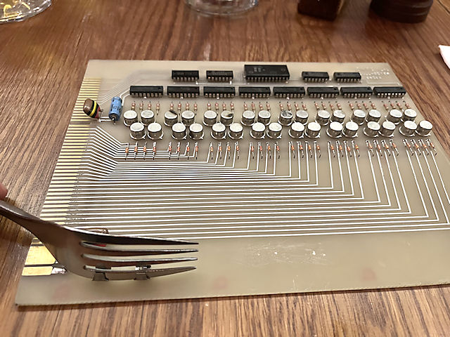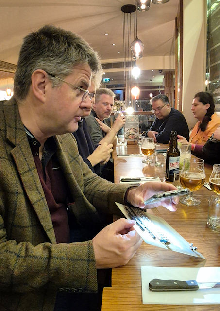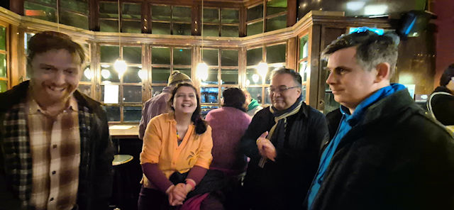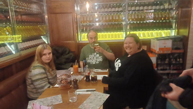 There was a bit of a problem with the Wildwood booking as on the day at 11am, Rex received a call asking where we all were. Later Rex arrived at the restaurant, past the queue of people waiting to get in, to confirm we would all get a table later. Winter Warmer was on tap at Bow Street and there was a welcome return this year of Andy, Rebecca and Megan. Matt brought in a logic interface board from a pipe organ for us all to analyse. Olivier added an acceptable bodge for the fuse.
